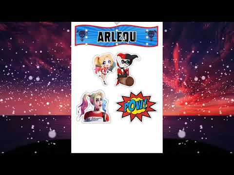 Arte Digital para festas tema Arlequina-Topo de bolo, Bandeirolas, caixa milk, convite e painel A4 - Arlequina Png Topo